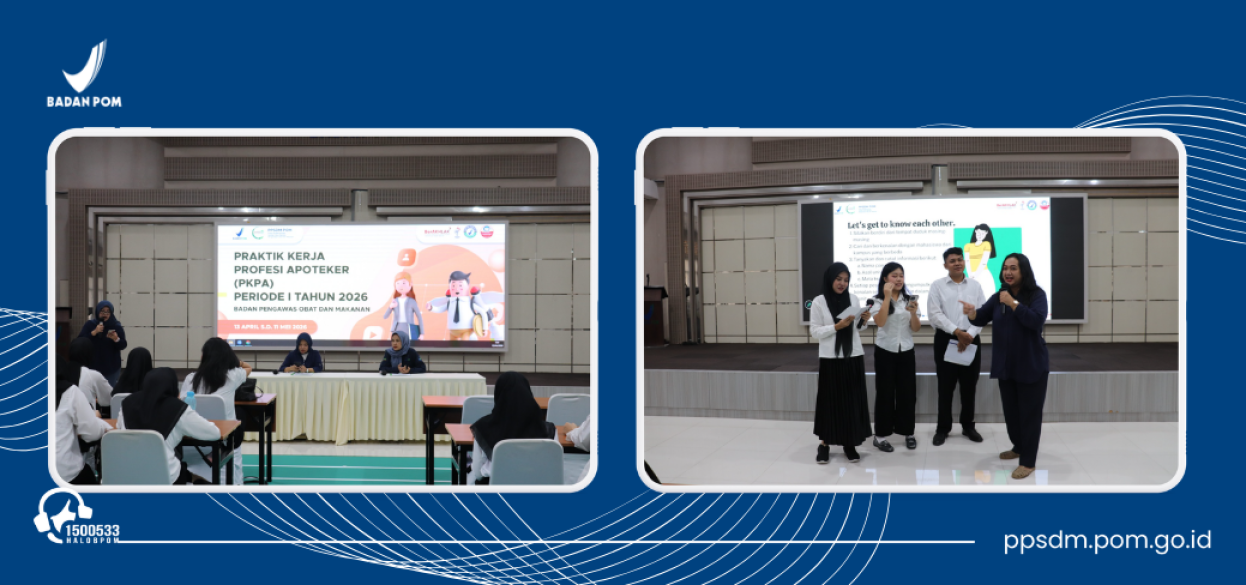 Jakarta - Pusat Pengembangan Sumber Daya Manusia Pengawasan Obat dan Makanan (PPSDM POM) kembali menyelenggarakan kegiatan Praktik Kerja Profesi Apoteker (PKPA) Periode 1 Tahun 2026 sebagai bagian dari upaya strategis dalam membangun sumber daya manusia unggul di bidang pengawasan obat dan makanan.