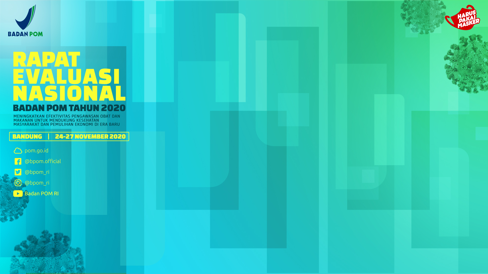 Rapat Evaluasi Nasional Badan Pengawas Obat dan Makanan (BPOM) Tahun 2020 “Meningkatkan Efektifitas Pengawasan Obat dan Makanan untuk Mendukung Kesehatan Masyarakat dan Pemulihan Ekonomi di Era Baru”. Diselenggarakan di Bandung, 24-27 November 2020 Materi Evaluasi Kinerja Pusat Pengembangan Pengujian Obat dan Makanan Nasional (PPPOMN) Tahun 2020 disampaikan Kepala PPPOMN -