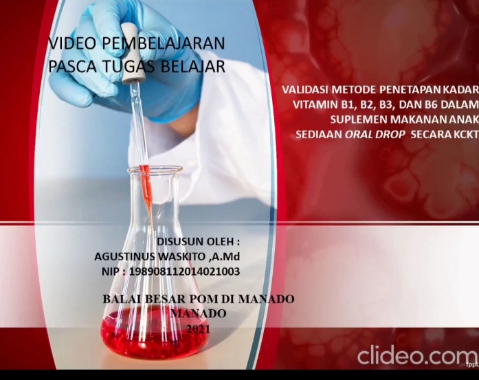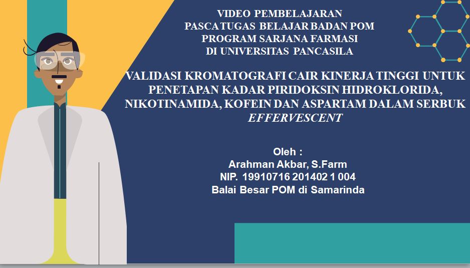 VIDEO PEMBELAJARAN PASCA TUGAS BELAJAR MENGENAI VALIDASI KROMATOGRAFI CAIR KINERJA TINGGI UNTUK PENETAPAN KADAR PIRIDOKSIN HIDROKLORIDA, NIKOTINAMIDA, KOFEIN DAN ASPARTAM DALAM SERBUK EFFERVESCENT -