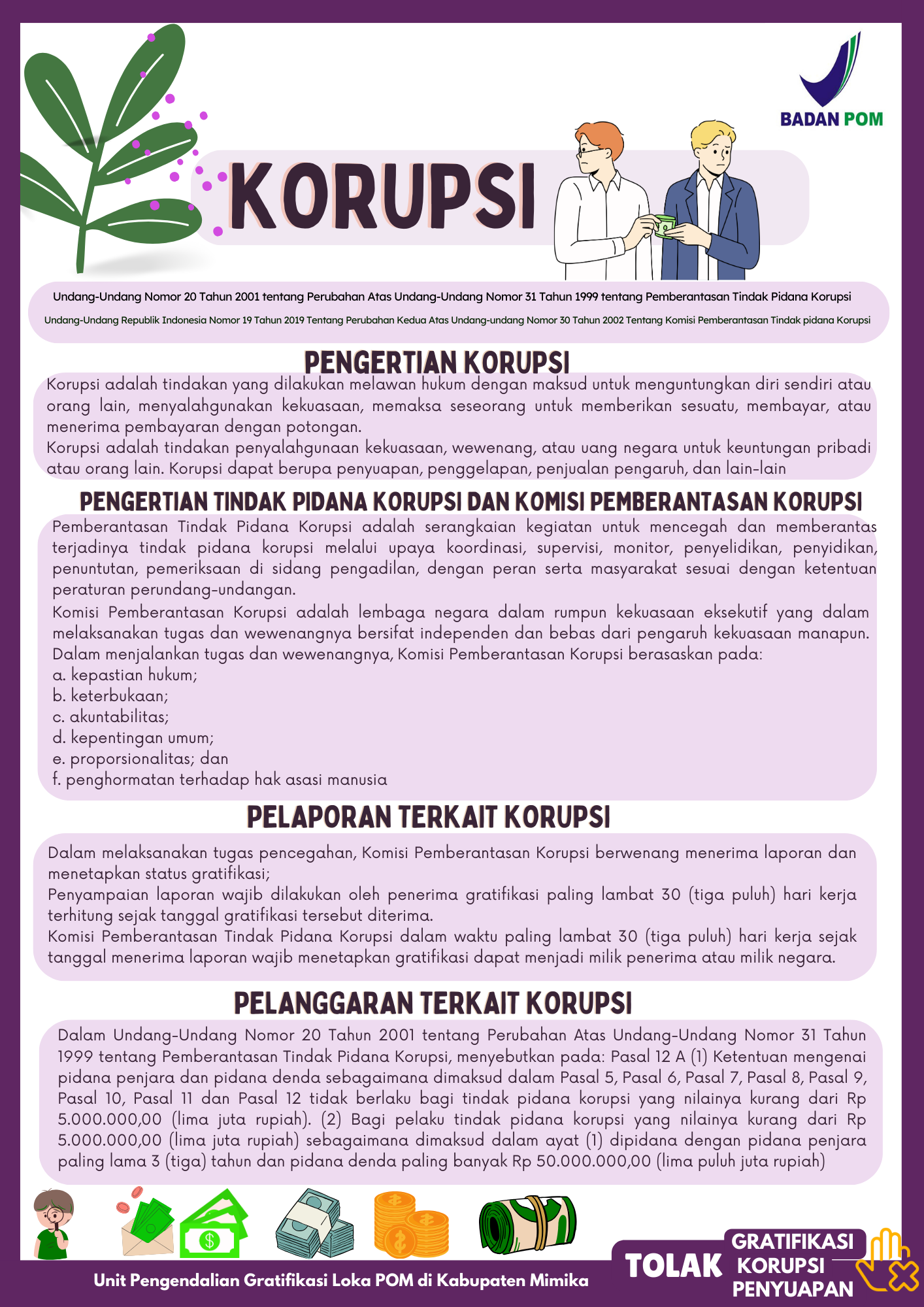Infografis Tolak Gratifikasi. Korupsi, Penyuapan