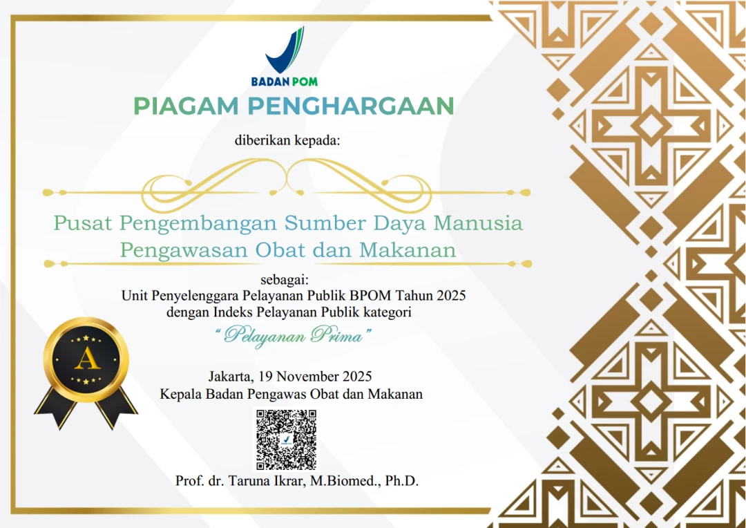 PPSDM POM Raih Penghargaan Pelayanan Prima sebagai Unit Penyelenggara Pelayanan Publik Badan POM Tahun 2025